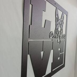 Quadro Decorativo fabricado em Chapa de Aço 1,5mm cortado em máquina Laser Fibra Ótica, gerando altíssima precisão nos detalhes, para o acabamento utilizamos pintura através do sistema de Pintura Eletrostática à Pó conhecido popularmente como pintura epóxi, assegurando ao produto maior resistência, e um Acabamento Superior na cor Preto Fosco com Textura Lixa e Acrílico espelhado