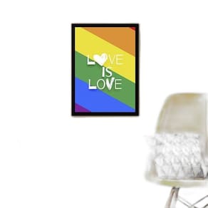 Quadro love is love 24x18cm Moldura: madeira preta Informações do produto tire todas as suas dúvidas no descritivo abaixo: decoração para quarto, sala, cozinha, escritório, área gourmet e muito mais. Chega de paredes vazias medidas - cada peça tem 24x18cm a5 . Material do papel - papel fotográfico brilhante de altíssima resolução acabamento - todos os quadros são acompanhados de uma película de acetato para proteção da imagem. - moldura em madeira maciça na cor branca e pendurador móvel que pode ser retirado facilmente caso deseje fixar com fita dupla face. - os quadros são embalados de forma segura com plástico bolha com camada dupla de acordo com o tamanho dos quadros. Garantia - garantia de 3 meses prazo de envio pedimos 24 horas úteis no máximo para enviar seu pedido após o envio, segue os prazos normais dos correios, cerca de 7 dias úteis exceto para norte e nordeste, que pode ser de até 14 dias úteis. Em diversas cidades, este prazo normalmente é reduzido, mas depende do prazo dos correios. Meu quadro chegou. Como posso fixá-lo Você precisa apenas de um martelo e um prego, pois os quadros já vão acompanhados de penduradores. Esta é a forma mais indicada. Caso prefira, você pode utilizar uma fita dupla face neste caso, sugerimos de alta qualidade para evitar que descole e seu quadro caia . Como posso limpar meu quadro A limpeza é feita como um móvel comum da sua casa. Apenas um pano seco ou espanador são suficientes para tal
