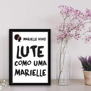 Quadro lute como marielle 45x34cm - com vidro Moldura: madeira preta Informações do produto tire todas as suas dúvidas no descritivo abaixo: decoração para quarto, sala, cozinha, escritório, área gourmet e muito mais. Chega de paredes vazias medidas - cada peça tem 45x34cm a3 . Material do papel - papel fotográfico brilhante de altíssima resolução acabamento - todos os quadros são acompanhados de vidro para proteção da imagem. - moldura em madeira maciça na cor preta e pendurador . - os quadros são embalados de forma segura com plástico bolha com camada dupla de acordo com o tamanho dos quadros. Garantia - garantia de 3 meses. Meu quadro chegou. Como posso fixá-lo Você precisa apenas de um martelo e um prego, pois os quadros já vão acompanhados de penduradores. Esta é a forma mais indicada. Como posso limpar meu quadro A limpeza é feita como um móvel comum da sua casa. Apenas um pano seco ou espanador são suficientes para tal Ean: 7892728831676