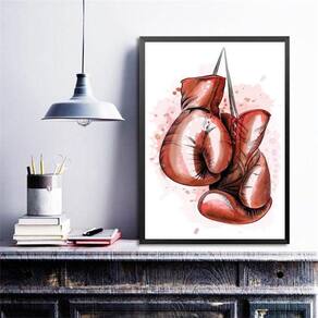 Quadro luva de boxe - aquarela 33x24cm - com vidro Moldura: madeira branca Informações do produto tire todas as suas dúvidas no descritivo abaixo: decoração para quarto, sala, cozinha, escritório, área gourmet e muito mais. Chega de paredes vazias medidas - cada peça tem 33x24cm a4 . Material do papel - papel fotográfico brilhante de altíssima resolução acabamento - todos os quadros são acompanhados de vidro para proteção da imagem. - moldura em madeira maciça na cor preta ou branca conforme produto escolhido e pendurador . - os quadros são embalados de forma segura com plástico bolha com camada dupla de acordo com o tamanho dos quadros. - de 3 meses. Meu quadro chegou. Como posso fixá-lo Você precisa apenas de um martelo e um prego, pois os quadros já vão acompanhados de penduradores. Esta é a forma mais indicada. Como posso limpar meu quadro A limpeza é feita como um móvel comum da sua casa. Apenas um pano seco ou espanador são suficientes para tal