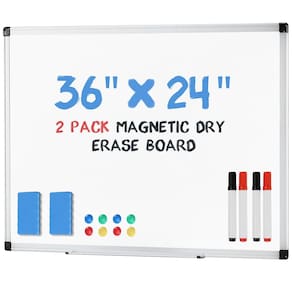 - Conjunto completo para uso imediato: este quadro branco magnético vem com tudo o que você precisa para começar a usá-lo imediatamente: uma placa de 91 x 61 cm (moldura incluída), uma bandeja de caneta resistente, um conjunto de ferragens de montagem, 1 borracha apagável a seco, 2 marcadores e 4 ímãs coloridos ().