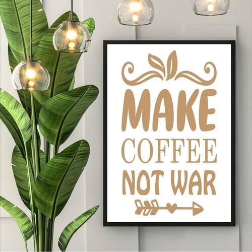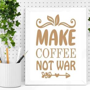 Quadro make coffee not war 24x18cm Cor: moldura branca Informações do produto tire todas as suas dúvidas no descritivo abaixo: decoração para quarto, sala, cozinha, escritório, área gourmet e muito mais. Chega de paredes vazias medidas - cada peça tem 24x18cm a5 . Material do papel - papel fotográfico brilhante de altíssima resolução acabamento - todos os quadros são acompanhados de uma película de acetato para proteção da imagem. - os quadros são embalados de forma segura com plástico bolha com camada dupla de acordo com o tamanho dos quadros. - de 3 meses. Meu quadro chegou. Como posso fixá-lo Você precisa apenas de um martelo e um prego, pois os quadros já vão acompanhados de penduradores. Esta é a forma mais indicada. Caso prefira, você pode utilizar uma fita dupla face neste caso, sugerimos de alta qualidade para evitar que descole e seu quadro caia . Como posso limpar meu quadro A limpeza é feita como um móvel comum da sua casa. Apenas um pano seco ou espanador são suficientes para tal Marca: Não Informado Ean: 7891234565181