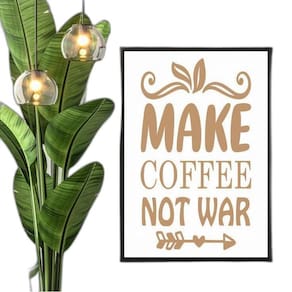 Quadro make coffee not war 33x24cm Cor: moldura preta Informações do produto tire todas as suas dúvidas no descritivo abaixo: decoração para quarto, sala, cozinha, escritório, área gourmet e muito mais. Chega de paredes vazias medidas - cada peça tem 33x24cm a4 . Material do papel - papel fotográfico brilhante de altíssima resolução acabamento - todos os quadros são acompanhados de uma película de acetato para proteção da imagem. - os quadros são embalados de forma segura com plástico bolha com camada dupla de acordo com o tamanho dos quadros. - de 3 meses. Meu quadro chegou. Como posso fixá-lo Você precisa apenas de um martelo e um prego, pois os quadros já vão acompanhados de penduradores. Esta é a forma mais indicada. Caso prefira, você pode utilizar uma fita dupla face neste caso, sugerimos de alta qualidade para evitar que descole e seu quadro caia . Como posso limpar meu quadro A limpeza é feita como um móvel comum da sua casa. Apenas um pano seco ou espanador são suficientes para tal Marca: Não Informado Ean: 7891234565198