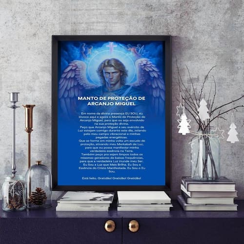 Quadro manto de proteção de arcanjo miguel 45x34cm - com vidro Cor: moldura preta Informações do produto tire todas as suas dúvidas no descritivo abaixo: decoração para quarto, sala, cozinha, escritório, área gourmet e muito mais. Chega de paredes vazias medidas - cada peça tem 45x34cm a3 . Material do papel - papel fotográfico brilhante de altíssima resolução acabamento - todos os quadros são acompanhados de vidro para proteção da imagem. - moldura em madeira maciça na cor preta ou branca conforme produto escolhido e pendurador . - os quadros são embalados de forma segura com plástico bolha com camada dupla de acordo com o tamanho dos quadros. Garantia - garantia de 3 meses. Meu quadro chegou. Como posso fixá-lo Você precisa apenas de um martelo e um prego, pois os quadros já vão acompanhados de penduradores. Esta é a forma mais indicada. Como posso limpar meu quadro A limpeza é feita como um móvel comum da sua casa. Apenas um pano seco ou espanador são suficientes para tal