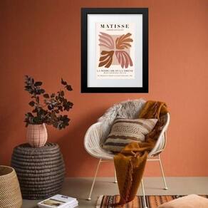 Quadro matisse terracota - 60x48cm Moldura: madeira preta Informações do produto tire todas as suas dúvidas no descritivo abaixo: decoração para quarto, sala, cozinha, escritório, área gourmet e muito mais. Chega de paredes vazias medidas - cada peça tem 60x48cm . Material do papel - papel fotográfico brilhante de altíssima resolução acabamento - todos os quadros são acompanhados de vidro para proteção da imagem. - moldura em madeira maciça na cor preta ou branca conforme produto escolhido e pendurador. - paspatur branco com 7cm de largura - os quadros são embalados de forma segura com plástico bolha com camada dupla de acordo com o tamanho dos quadros. - de 3 meses. Meu quadro chegou. Como posso fixá-lo Você precisa apenas de um martelo e um prego, pois os quadros já vão acompanhados de penduradores. Esta é a forma mais indicada. Como posso limpar meu quadro A limpeza é feita como um móvel comum da sua casa. Apenas um pano seco ou espanador são suficientes para tal Marca: Não Informado
