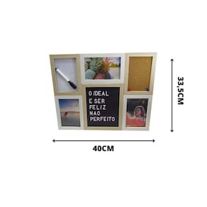 Este quadro multifuncional é ideal para organizar memórias e lembretes de forma prática e estilosa. Com espaço para três fotos de 10x15 cm (duas verticais e uma horizontal), ele também inclui uma lousa para anotações rápidas e um espaço especial para post-its ou recados. Acompanha ainda um letreiro com 142 peças, incluindo letras e símbolos, para criar mensagens personalizadas.