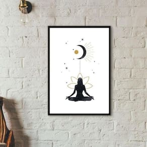Quadro meditação - conexão universo 45x34cm Moldura: madeira preta Informações do produto tire todas as suas dúvidas no descritivo abaixo: decoração para quarto, sala, cozinha, escritório, área gourmet e muito mais. Chega de paredes vazias. Medidas - cada peça tem 45x34cm a3 . Material do papel - papel fotográfico brilhante de altíssima resolução acabamento - todos os quadros são acompanhados de uma película de acetato para proteção da imagem. - os quadros são embalados de forma segura com plástico bolha com camada dupla de acordo com o tamanho dos quadros. Garantia - garantia de 3 meses. Meu quadro chegou. Como posso fixá-lo Você precisa apenas de um martelo e um prego, pois os quadros já vão acompanhados de penduradores. Esta é a forma mais indicada. Caso prefira, você pode utilizar uma fita dupla face neste caso, sugerimos de alta qualidade para evitar que descole e seu quadro caia . Como posso limpar meu quadro A limpeza é feita como um móvel comum da sua casa. Apenas um pano seco ou espanador são suficientes para tal