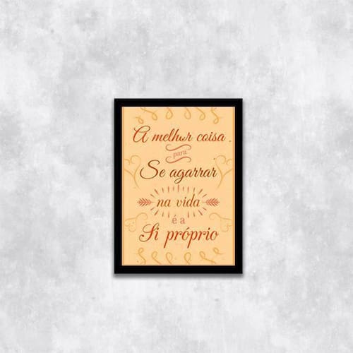 Quadro melhor coisa para se agarrar na vida 45x34cm - com vidro Moldura: madeira preta Informações do produto tire todas as suas dúvidas no descritivo abaixo: decoração para quarto, sala, cozinha, escritório, área gourmet e muito mais. Chega de paredes vazias medidas - cada peça tem 45x34cm a3 . Material do papel - papel fotográfico brilhante de altíssima resolução acabamento - todos os quadros são acompanhados de vidro para proteção da imagem. - moldura em madeira maciça na cor preta e pendurador . - os quadros são embalados de forma segura com plástico bolha com camada dupla de acordo com o tamanho dos quadros. - de 3 meses. Meu quadro chegou. Como posso fixá-lo Você precisa apenas de um martelo e um prego, pois os quadros já vão acompanhados de penduradores. Esta é a forma mais indicada. Como posso limpar meu quadro A limpeza é feita como um móvel comum da sua casa. Apenas um pano seco ou espanador são suficientes para tal Ean: 7895142163286
