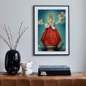 Quadro menino jesus de praga - 60x48cm Moldura: madeira preta Informações do produto tire todas as suas dúvidas no descritivo abaixo: decoração para quarto, sala, cozinha, escritório, área gourmet e muito mais. Chega de paredes vazias medidas - cada peça tem 60x48cm . Material do papel - papel fotográfico brilhante de altíssima resolução acabamento - todos os quadros são acompanhados de vidro para proteção da imagem. - moldura em madeira maciça na cor preta ou branca conforme produto escolhido e pendurador. - paspatur branco com 7cm de largura - os quadros são embalados de forma segura com plástico bolha com camada dupla de acordo com o tamanho dos quadros. Garantia - garantia de 3 meses. Meu quadro chegou. Como posso fixá-lo Você precisa apenas de um martelo e um prego, pois os quadros já vão acompanhados de penduradores. Esta é a forma mais indicada. Como posso limpar meu quadro A limpeza é feita como um móvel comum da sua casa. Apenas um pano seco ou espanador são suficientes para tal