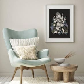 Quadro místico ganesha - 60x48cm Moldura: madeira branca Informações do produto tire todas as suas dúvidas no descritivo abaixo: decoração para quarto, sala, cozinha, escritório, área gourmet e muito mais. Chega de paredes vazias medidas - cada peça tem 60x48cm . Material do papel - papel fotográfico brilhante de altíssima resolução acabamento - todos os quadros são acompanhados de vidro para proteção da imagem. - moldura em madeira maciça na cor preta ou branca conforme produto escolhido e pendurador. - paspatur branco com 7cm de largura - os quadros são embalados de forma segura com plástico bolha com camada dupla de acordo com o tamanho dos quadros. Garantia - garantia de 3 meses. Meu quadro chegou. Como posso fixá-lo Você precisa apenas de um martelo e um prego, pois os quadros já vão acompanhados de penduradores. Esta é a forma mais indicada. Como posso limpar meu quadro A limpeza é feita como um móvel comum da sua casa. Apenas um pano seco ou espanador são suficientes para tal