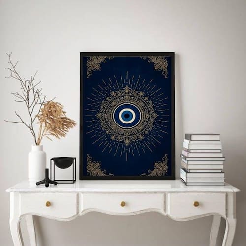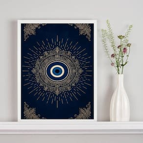 Quadro mistico mandala olho grego - azul dourado 24x18cm Cor: moldura preta Informações do produto tire todas as suas dúvidas no descritivo abaixo: decoração para quarto, sala, cozinha, escritório, área gourmet e muito mais. Chega de paredes vazias medidas - cada peça tem 24x18cm a5 . Material do papel - papel fotográfico brilhante de altíssima resolução acabamento - todos os quadros são acompanhados de uma película de acetato para proteção da imagem. - os quadros são embalados de forma segura com plástico bolha com camada dupla de acordo com o tamanho dos quadros. - de 3 meses. Meu quadro chegou. Como posso fixá-lo Você precisa apenas de um martelo e um prego, pois os quadros já vão acompanhados de penduradores. Esta é a forma mais indicada. Caso prefira, você pode utilizar uma fita dupla face neste caso, sugerimos de alta qualidade para evitar que descole e seu quadro caia . Como posso limpar meu quadro A limpeza é feita como um móvel comum da sua casa. Apenas um pano seco ou espanador são suficientes para tal