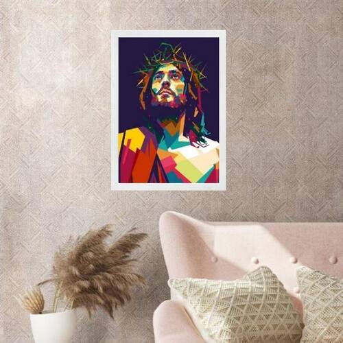 Quadro moderno cristo- geométrico 45x34cm Moldura: madeira branca Informações do produto tire todas as suas dúvidas no descritivo abaixo: decoração para quarto, sala, cozinha, escritório, área gourmet e muito mais. Chega de paredes vazias. Medidas - cada peça tem 45x34cm a3 . Material do papel - papel fotográfico brilhante de altíssima resolução acabamento - todos os quadros são acompanhados de uma película de acetato para proteção da imagem. - os quadros são embalados de forma segura com plástico bolha com camada dupla de acordo com o tamanho dos quadros. - de 3 meses. Meu quadro chegou. Como posso fixá-lo Você precisa apenas de um martelo e um prego, pois os quadros já vão acompanhados de penduradores. Esta é a forma mais indicada. Caso prefira, você pode utilizar uma fita dupla face neste caso, sugerimos de alta qualidade para evitar que descole e seu quadro caia . Como posso limpar meu quadro A limpeza é feita como um móvel comum da sua casa. Apenas um pano seco ou espanador são suficientes para tal Marca: Não Informado