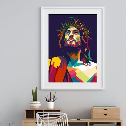 Quadro moderno jesus- 60x48cm Moldura: madeira preta Informações do produto tire todas as suas dúvidas no descritivo abaixo: decoração para quarto, sala, cozinha, escritório, área gourmet e muito mais. Chega de paredes vazias medidas - cada peça tem 60x48cm . Material do papel - papel fotográfico brilhante de altíssima resolução acabamento - todos os quadros são acompanhados de vidro para proteção da imagem. - moldura em madeira maciça na cor preta ou branca conforme produto escolhido e pendurador. - paspatur branco com 7cm de largura - os quadros são embalados de forma segura com plástico bolha com camada dupla de acordo com o tamanho dos quadros. Garantia - garantia de 3 meses. Meu quadro chegou. Como posso fixá-lo Você precisa apenas de um martelo e um prego, pois os quadros já vão acompanhados de penduradores. Esta é a forma mais indicada. Como posso limpar meu quadro A limpeza é feita como um móvel comum da sua casa. Apenas um pano seco ou espanador são suficientes para tal