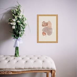 Quadro moldura dourada boho folhas 24x18cm Acabamento: com vidro Informações do produto tire todas as suas dúvidas no descritivo abaixo: decoração para quarto, sala, cozinha, escritório, área gourmet e muito mais. Chega de paredes vazias medidas - cada peça tem 24x18cm a5 . Material do papel - papel fotográfico brilhante de altíssima resolução acabamento - todos os quadros são acompanhados de vidro ou uma película de acetato para proteção da imagem conforme escolha . - os quadros são embalados de forma segura com plástico bolha com camada dupla de acordo com o tamanho dos quadros. Garantia - garantia de 3 meses. Meu quadro chegou. Como posso fixá-lo Você precisa apenas de um martelo e um prego, pois os quadros já vão acompanhados de penduradores. Esta é a forma mais indicada. Caso prefira, você pode utilizar uma fita dupla face neste caso, sugerimos de alta qualidade para evitar que descole e seu quadro caia . Como posso limpar meu quadro A limpeza é feita como um móvel comum da sua casa. Apenas um pano seco ou espanador são suficientes para tal