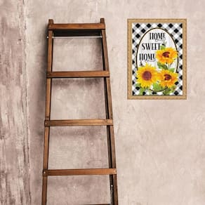 Quadro moldura dourada home sweet home girassóis 24x18cm Acabamento: com vidro Informações do produto tire todas as suas dúvidas no descritivo abaixo: decoração para quarto, sala, cozinha, escritório, área gourmet e muito mais. Chega de paredes vazias medidas - cada peça tem 24x18cm a5 . Material do papel - papel fotográfico brilhante de altíssima resolução acabamento - todos os quadros são acompanhados de vidro ou uma película de acetato para proteção da imagem conforme escolha . - os quadros são embalados de forma segura com plástico bolha com camada dupla de acordo com o tamanho dos quadros. Garantia - garantia de 3 meses. Meu quadro chegou. Como posso fixá-lo Você precisa apenas de um martelo e um prego, pois os quadros já vão acompanhados de penduradores. Esta é a forma mais indicada. Caso prefira, você pode utilizar uma fita dupla face neste caso, sugerimos de alta qualidade para evitar que descole e seu quadro caia . Como posso limpar meu quadro A limpeza é feita como um móvel comum da sua casa. Apenas um pano seco ou espanador são suficientes para tal