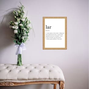 Quadro moldura dourada lar significado 24x18cm Acabamento: com vidro Informações do produto tire todas as suas dúvidas no descritivo abaixo: decoração para quarto, sala, cozinha, escritório, área gourmet e muito mais. Chega de paredes vazias medidas - cada peça tem 24x18cm a5 . Material do papel - papel fotográfico brilhante de altíssima resolução acabamento - todos os quadros são acompanhados de vidro ou uma película de acetato para proteção da imagem conforme escolha . - os quadros são embalados de forma segura com plástico bolha com camada dupla de acordo com o tamanho dos quadros. Garantia - garantia de 3 meses. Meu quadro chegou. Como posso fixá-lo Você precisa apenas de um martelo e um prego, pois os quadros já vão acompanhados de penduradores. Esta é a forma mais indicada. Caso prefira, você pode utilizar uma fita dupla face neste caso, sugerimos de alta qualidade para evitar que descole e seu quadro caia . Como posso limpar meu quadro A limpeza é feita como um móvel comum da sua casa. Apenas um pano seco ou espanador são suficientes para tal