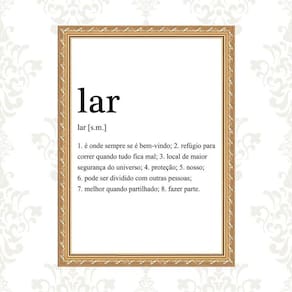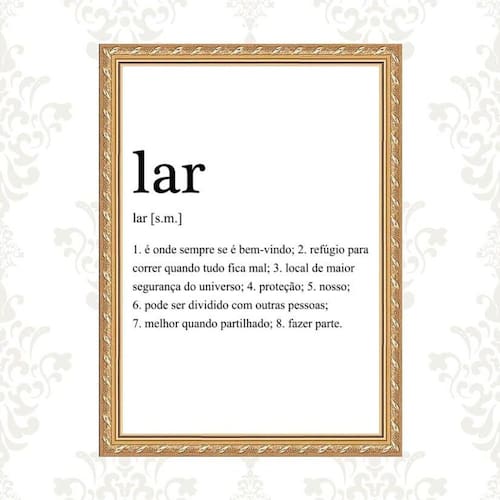 Quadro moldura dourada lar significado 33x24cm Acabamento: com acetato Informações do produto tire todas as suas dúvidas no descritivo abaixo: decoração para quarto, sala, cozinha, escritório, área gourmet e muito mais. Chega de paredes vazias medidas - cada peça tem 33x24cm a4 . Material do papel - papel fotográfico brilhante de altíssima resolução acabamento - todos os quadros são acompanhados de vidro ou uma película de acetato para proteção da imagem conforme escolha . - os quadros são embalados de forma segura com plástico bolha com camada dupla de acordo com o tamanho dos quadros. Garantia - garantia de 3 meses. Meu quadro chegou. Como posso fixá-lo Você precisa apenas de um martelo e um prego, pois os quadros já vão acompanhados de penduradores. Esta é a forma mais indicada. Caso prefira, você pode utilizar uma fita dupla face neste caso, sugerimos de alta qualidade para evitar que descole e seu quadro caia . Como posso limpar meu quadro A limpeza é feita como um móvel comum da sua casa. Apenas um pano seco ou espanador são suficientes para tal