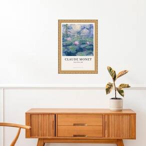 Quadro moldura dourada monet - lilies 45x34cm Acabamento: com vidro Informações do produto tire todas as suas dúvidas no descritivo abaixo: decoração para quarto, sala, cozinha, escritório, área gourmet e muito mais. Chega de paredes vazias. Medidas - cada peça tem 45x34cm a3 . Material do papel - papel fotográfico brilhante de altíssima resolução acabamento - todos os quadros são acompanhados de vidro ou uma película de acetato para proteção da imagem conforme escolha . - os quadros são embalados de forma segura com plástico bolha com camada dupla de acordo com o tamanho dos quadros. Garantia - garantia de 3 meses. Meu quadro chegou. Como posso fixá-lo Você precisa apenas de um martelo e um prego, pois os quadros já vão acompanhados de penduradores. Esta é a forma mais indicada. Caso prefira, você pode utilizar uma fita dupla face neste caso, sugerimos de alta qualidade para evitar que descole e seu quadro caia . Como posso limpar meu quadro A limpeza é feita como um móvel comum da sua casa. Apenas um pano seco ou espanador são suficientes para tal