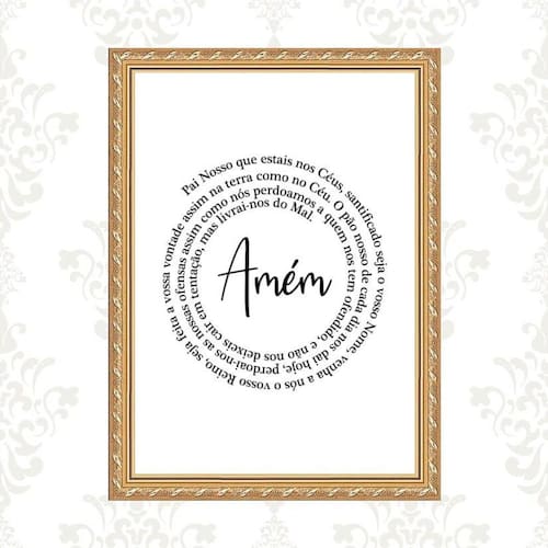 Quadro moldura dourada pai nosso espiral 33x24cm Acabamento: com vidro Informações do produto tire todas as suas dúvidas no descritivo abaixo: decoração para quarto, sala, cozinha, escritório, área gourmet e muito mais. Chega de paredes vazias medidas - cada peça tem 33x24cm a4 . Material do papel - papel fotográfico brilhante de altíssima resolução acabamento - todos os quadros são acompanhados de vidro ou uma película de acetato para proteção da imagem conforme escolha . - os quadros são embalados de forma segura com plástico bolha com camada dupla de acordo com o tamanho dos quadros. Garantia - garantia de 3 meses. Meu quadro chegou. Como posso fixá-lo Você precisa apenas de um martelo e um prego, pois os quadros já vão acompanhados de penduradores. Esta é a forma mais indicada. Caso prefira, você pode utilizar uma fita dupla face neste caso, sugerimos de alta qualidade para evitar que descole e seu quadro caia . Como posso limpar meu quadro A limpeza é feita como um móvel comum da sua casa. Apenas um pano seco ou espanador são suficientes para tal