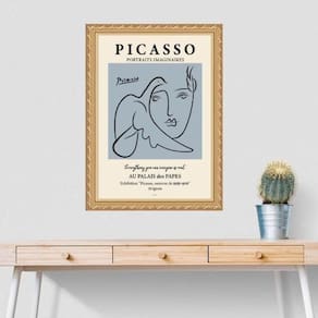 Quadro moldura dourada picasso - azul 24x18cm Acabamento: com vidro Informações do produto tire todas as suas dúvidas no descritivo abaixo: decoração para quarto, sala, cozinha, escritório, área gourmet e muito mais. Chega de paredes vazias medidas - cada peça tem 24x18cm a5 . Material do papel - papel fotográfico brilhante de altíssima resolução acabamento - todos os quadros são acompanhados de vidro ou uma película de acetato para proteção da imagem conforme escolha . - os quadros são embalados de forma segura com plástico bolha com camada dupla de acordo com o tamanho dos quadros. - de 3 meses. Meu quadro chegou. Como posso fixá-lo Você precisa apenas de um martelo e um prego, pois os quadros já vão acompanhados de penduradores. Esta é a forma mais indicada. Caso prefira, você pode utilizar uma fita dupla face neste caso, sugerimos de alta qualidade para evitar que descole e seu quadro caia . Como posso limpar meu quadro A limpeza é feita como um móvel comum da sua casa. Apenas um pano seco ou espanador são suficientes para tal Marca: Não Informado