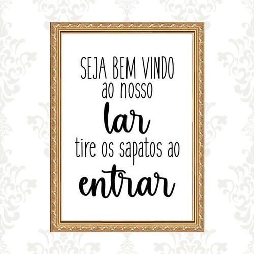 Quadro moldura dourada tire os sapatos 45x34cm Acabamento: com vidro Informações do produto tire todas as suas dúvidas no descritivo abaixo: decoração para quarto, sala, cozinha, escritório, área gourmet e muito mais. Chega de paredes vazias. Medidas - cada peça tem 45x34cm a3 . Material do papel - papel fotográfico brilhante de altíssima resolução acabamento - todos os quadros são acompanhados de vidro ou uma película de acetato para proteção da imagem conforme escolha . - os quadros são embalados de forma segura com plástico bolha com camada dupla de acordo com o tamanho dos quadros. Garantia - garantia de 3 meses. Meu quadro chegou. Como posso fixá-lo Você precisa apenas de um martelo e um prego, pois os quadros já vão acompanhados de penduradores. Esta é a forma mais indicada. Caso prefira, você pode utilizar uma fita dupla face neste caso, sugerimos de alta qualidade para evitar que descole e seu quadro caia . Como posso limpar meu quadro A limpeza é feita como um móvel comum da sua casa. Apenas um pano seco ou espanador são suficientes para tal