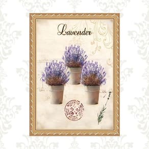 Quadro moldura dourada vasinhos de lavanda 24x18cm
