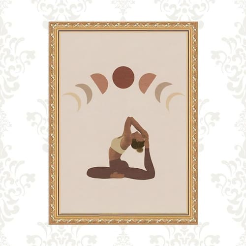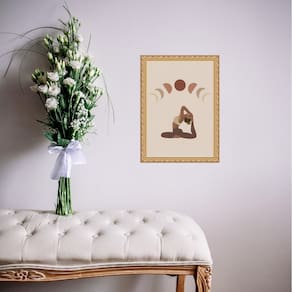 Quadro moldura dourada yoga - fases lua 24x18cm Acabamento: com vidro Informações do produto tire todas as suas dúvidas no descritivo abaixo: decoração para quarto, sala, cozinha, escritório, área gourmet e muito mais. Chega de paredes vazias medidas - cada peça tem 24x18cm a5 . Material do papel - papel fotográfico brilhante de altíssima resolução acabamento - todos os quadros são acompanhados de vidro ou uma película de acetato para proteção da imagem conforme escolha . - os quadros são embalados de forma segura com plástico bolha com camada dupla de acordo com o tamanho dos quadros. Garantia - garantia de 3 meses. Meu quadro chegou. Como posso fixá-lo Você precisa apenas de um martelo e um prego, pois os quadros já vão acompanhados de penduradores. Esta é a forma mais indicada. Caso prefira, você pode utilizar uma fita dupla face neste caso, sugerimos de alta qualidade para evitar que descole e seu quadro caia . Como posso limpar meu quadro A limpeza é feita como um móvel comum da sua casa. Apenas um pano seco ou espanador são suficientes para tal