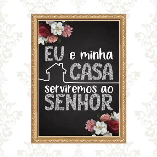 Quadro moldura ouro eu e minha casa serviremos ao senhor 24x18cm
