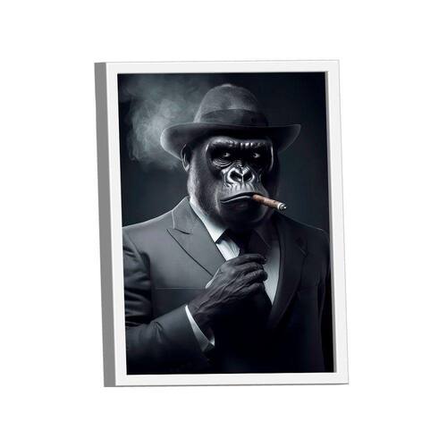 Quadro Monkey Gangstar -- BR ARTES Moldura Branca - Gigante 180x105 -