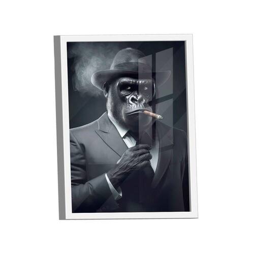 Quadro Monkey Gangstar -- BR ARTES Moldura Branca e Vidro - Grande 118x78 -