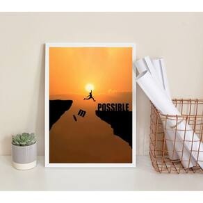 Quadro Motivacional Impossible-Possible 33X24Cm O Quadro Motivacional Impossible-Possible é a peça perfeita para decorar seu quarto, sala, cozinha, escritório, área gourmet e muito mais. Chega de paredes vazias! Com medidas de 33x24cm A4 , esse quadro é feito em papel fotográfico brilhante de altíssima resolução, garantindo uma imagem nítida e detalhada. A moldura é feita em madeira preta, que confere um acabamento elegante e durável. Para proteger a imagem, todos os quadros são acompanhados de uma película de acetato. Além disso, eles são embalados de forma segura com plástico bolha de camada dupla, garantindo que cheguem até você em perfeito estado. E para sua tranquilidade, oferecemos uma de 3 meses. A fixação do quadro é muito simples. Basta utilizar um martelo e um prego, pois os quadros já vão acompanhados de penduradores. Essa é a forma mais indicada. No entanto, caso prefira, você também pode utilizar uma fita dupla face de alta qualidade para evitar que o quadro descole e caia. A limpeza do quadro é fácil e prática. Basta utilizar um pano seco ou um espanador, assim como você faria com qualquer outro móvel da sua casa. Com esses cuidados simples, seu quadro se manterá sempre bonito e conservado. Características técnicas: - Título: Quadro Motivacional Impossible-Possible 33X24Cm - Medidas: 33x24cm A4 - Material: Papel fotográfico brilhante de altíssima resolução - Moldura: Madeira preta - Acompanha película de acetato para proteção da imagem - Embalagem segura com plástico bolha de camada dupla - de 3 meses O Quadro Motivacional Impossible-Possible é a escolha perfeita para trazer uma dose extra de motivação e inspiração para o seu ambiente. Não perca a oportunidade de decorar seu espaço de forma criativa e única. Adquira já o seu! Marca: Não Informado Ean: 7898054112830
