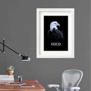Quadro motivacional águia foco - 60x48cm Moldura: madeira preta Informações do produto tire todas as suas dúvidas no descritivo abaixo: decoração para quarto, sala, cozinha, escritório, área gourmet e muito mais. Chega de paredes vazias medidas - cada peça tem 60x48cm . Material do papel - papel fotográfico brilhante de altíssima resolução acabamento - todos os quadros são acompanhados de vidro para proteção da imagem. - moldura em madeira maciça na cor preta ou branca conforme produto escolhido e pendurador. - paspatur branco com 7cm de largura - os quadros são embalados de forma segura com plástico bolha com camada dupla de acordo com o tamanho dos quadros. Garantia - garantia de 3 meses. Meu quadro chegou. Como posso fixá-lo Você precisa apenas de um martelo e um prego, pois os quadros já vão acompanhados de penduradores. Esta é a forma mais indicada. Como posso limpar meu quadro A limpeza é feita como um móvel comum da sua casa. Apenas um pano seco ou espanador são suficientes para tal