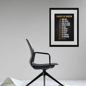 Quadro motivacional chances sucesso - 60x48cm Moldura: madeira branca Informações do produto tire todas as suas dúvidas no descritivo abaixo: decoração para quarto, sala, cozinha, escritório, área gourmet e muito mais. Chega de paredes vazias medidas - cada peça tem 60x48cm . Material do papel - papel fotográfico brilhante de altíssima resolução acabamento - todos os quadros são acompanhados de vidro para proteção da imagem. - moldura em madeira maciça na cor preta ou branca conforme produto escolhido e pendurador. - paspatur branco com 7cm de largura - os quadros são embalados de forma segura com plástico bolha com camada dupla de acordo com o tamanho dos quadros. Garantia - garantia de 3 meses. Meu quadro chegou. Como posso fixá-lo Você precisa apenas de um martelo e um prego, pois os quadros já vão acompanhados de penduradores. Esta é a forma mais indicada. Como posso limpar meu quadro A limpeza é feita como um móvel comum da sua casa. Apenas um pano seco ou espanador são suficientes para tal