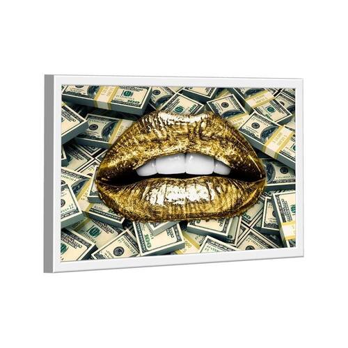 Quadro Mouth Dollars -- BR ARTES Moldura Branca - Ultra Grande 150x100 -