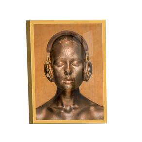 Quadro Mulher Dourada de Fone -- BR ARTES Moldura Preta e Vidro - Ultra Grande 150x100 -
