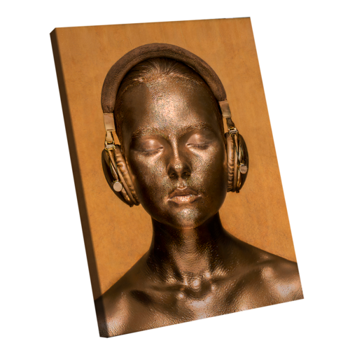 Quadro Mulher Dourada de Fone -- BR ARTES Borda Infinita - Grande 118x78 -