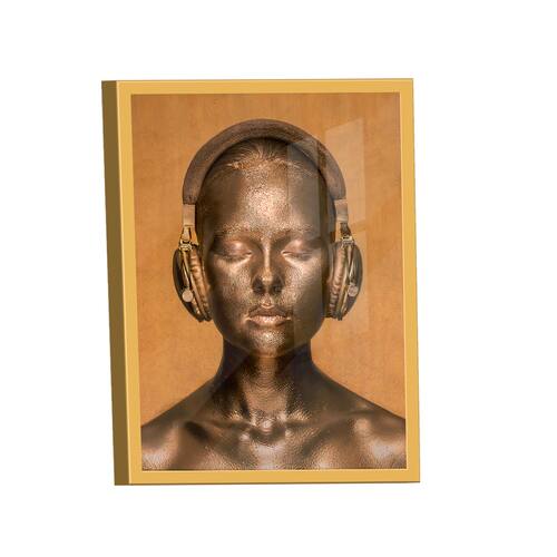 Quadro Mulher Dourada de Fone -- BR ARTES Moldura Dourada e Vidro - Grande 118x78 -