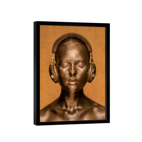 Quadro Mulher Dourada de Fone -- BR ARTES Moldura Preta - Grande 118x78 -