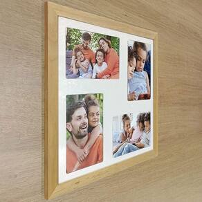 Valorize suas lembranças com o quadro multifotos Mastertel Quadro Multifotos 4 Fotos De 10x15 Paspatur Branco 30x30 Titulos Moldura Mel, ideal para expor até quatro fotos em ambientes internos. Com formato quadrado de 30x30 cm, ele organiza fotos 10x15 de forma harmoniosa, criando uma composição equilibrada na parede. O paspatur branco com recortes destaca cada imagem, enquanto a moldura em madeira maciça de reflorestamento e a película de acetato ajudam a proteger e realçar as fotos no dia a dia. Versátil, combina com salas, quartos, escritórios e corredores, integrando-se a diferentes estilos de decoração. A fabricação própria da Mastertel reforça o cuidado nos detalhes e o acabamento de qualidade do produto.