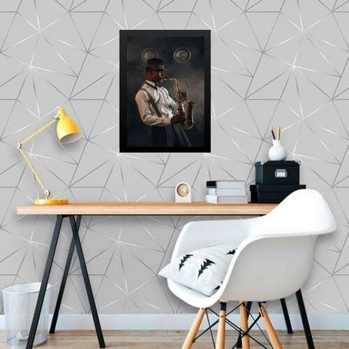 Quadro músico saxofone - jazz 45x34cm Moldura: madeira preta Informações do produto tire todas as suas dúvidas no descritivo abaixo: decoração para quarto, sala, cozinha, escritório, área gourmet e muito mais. Chega de paredes vazias. Medidas - cada peça tem 45x34cm a3 . Material do papel - papel fotográfico brilhante de altíssima resolução acabamento - todos os quadros são acompanhados de uma película de acetato para proteção da imagem. - os quadros são embalados de forma segura com plástico bolha com camada dupla de acordo com o tamanho dos quadros. Garantia - garantia de 3 meses. Meu quadro chegou. Como posso fixá-lo Você precisa apenas de um martelo e um prego, pois os quadros já vão acompanhados de penduradores. Esta é a forma mais indicada. Caso prefira, você pode utilizar uma fita dupla face neste caso, sugerimos de alta qualidade para evitar que descole e seu quadro caia . Como posso limpar meu quadro A limpeza é feita como um móvel comum da sua casa. Apenas um pano seco ou espanador são suficientes para tal