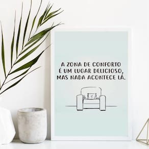Quadro nada acontece na zona de conforto 24x18cm Moldura: madeira preta Informações do produto tire todas as suas dúvidas no descritivo abaixo: decoração para quarto, sala, cozinha, escritório, área gourmet e muito mais. Chega de paredes vazias medidas - cada peça tem 24x18cm a5 . Material do papel - papel fotográfico brilhante de altíssima resolução acabamento - todos os quadros são acompanhados de uma película de acetato para proteção da imagem. - os quadros são embalados de forma segura com plástico bolha com camada dupla de acordo com o tamanho dos quadros. Garantia - garantia de 3 meses. Meu quadro chegou. Como posso fixá-lo Você precisa apenas de um martelo e um prego, pois os quadros já vão acompanhados de penduradores. Esta é a forma mais indicada. Caso prefira, você pode utilizar uma fita dupla face neste caso, sugerimos de alta qualidade para evitar que descole e seu quadro caia . Como posso limpar meu quadro A limpeza é feita como um móvel comum da sua casa. Apenas um pano seco ou espanador são suficientes para tal