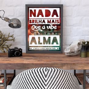 Quadro nada brilha mais que a alma 24x18cm - com vidro Moldura: madeira branca Informações do produto tire todas as suas dúvidas no descritivo abaixo: decoração para quarto, sala, cozinha, escritório, área gourmet e muito mais. Chega de paredes vazias medidas - cada peça tem 24x18cm a5 . Material do papel - papel fotográfico brilhante de altíssima resolução acabamento - todos os quadros são acompanhados de vidro para proteção da imagem. - moldura em madeira maciça na cor preta ou branca conforme produto escolhido e pendurador . - os quadros são embalados de forma segura com plástico bolha com camada dupla de acordo com o tamanho dos quadros. Garantia - garantia de 3 meses. Meu quadro chegou. Como posso fixá-lo Você precisa apenas de um martelo e um prego, pois os quadros já vão acompanhados de penduradores. Esta é a forma mais indicada. Como posso limpar meu quadro A limpeza é feita como um móvel comum da sua casa. Apenas um pano seco ou espanador são suficientes para tal