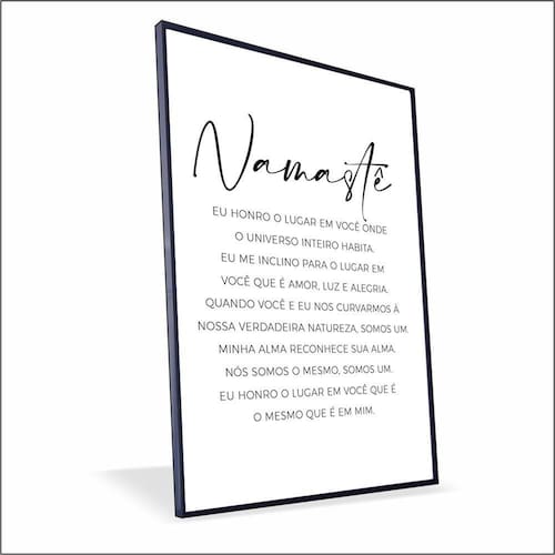 Quadro Namaste Canvas Sem Vidro Tamanho/moldura 70x50 Caixa Cor Preta Nossos quadros e imagens são de alta qualidade e definição, feitas com dedicação, cuidado e muito carinho e são exatamente iguais aos da foto. (Imagens são meramente ilustrativas).