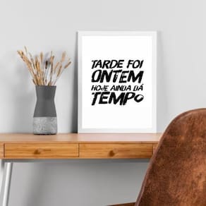 Quadro não é tarde ainda dá tempo 45x34cm Cor: moldura preta Informações do produto tire todas as suas dúvidas no descritivo abaixo: decoração para quarto, sala, cozinha, escritório, área gourmet e muito mais. Chega de paredes vazias. Medidas - cada peça tem 45x34cm a3 . Material do papel - papel fotográfico brilhante de altíssima resolução acabamento - todos os quadros são acompanhados de uma película de acetato para proteção da imagem. - os quadros são embalados de forma segura com plástico bolha com camada dupla de acordo com o tamanho dos quadros. Garantia - garantia de 3 meses. Meu quadro chegou. Como posso fixá-lo Você precisa apenas de um martelo e um prego, pois os quadros já vão acompanhados de penduradores. Esta é a forma mais indicada. Caso prefira, você pode utilizar uma fita dupla face neste caso, sugerimos de alta qualidade para evitar que descole e seu quadro caia . Como posso limpar meu quadro A limpeza é feita como um móvel comum da sua casa. Apenas um pano seco ou espanador são suficientes para tal
