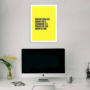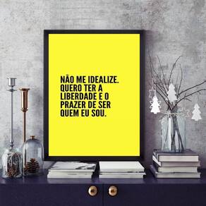Quadro não me idealize 45x34cm - com vidro Cor: moldura preta Informações do produto tire todas as suas dúvidas no descritivo abaixo: decoração para quarto, sala, cozinha, escritório, área gourmet e muito mais. Chega de paredes vazias medidas - cada peça tem 45x34cm a3 . Material do papel - papel fotográfico brilhante de altíssima resolução acabamento - todos os quadros são acompanhados de vidro para proteção da imagem. - moldura em madeira maciça na cor preta ou branca conforme produto escolhido e pendurador . - os quadros são embalados de forma segura com plástico bolha com camada dupla de acordo com o tamanho dos quadros. Garantia - garantia de 3 meses. Meu quadro chegou. Como posso fixá-lo Você precisa apenas de um martelo e um prego, pois os quadros já vão acompanhados de penduradores. Esta é a forma mais indicada. Como posso limpar meu quadro A limpeza é feita como um móvel comum da sua casa. Apenas um pano seco ou espanador são suficientes para tal
