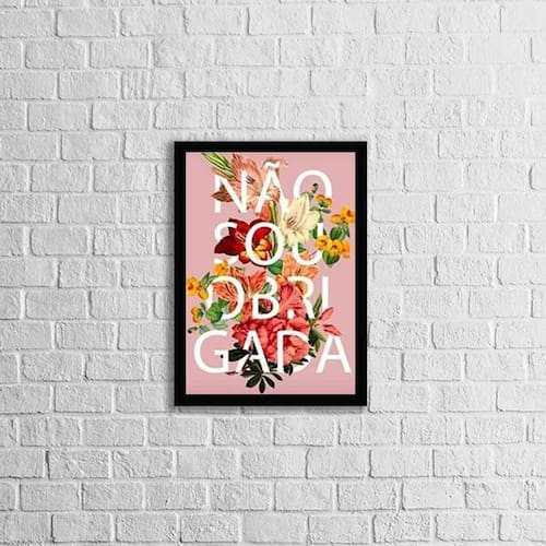 Quadro não sou obrigada fundo rosa 45x34cm - com vidro Moldura: madeira preta Informações do produto tire todas as suas dúvidas no descritivo abaixo: decoração para quarto, sala, cozinha, escritório, área gourmet e muito mais. Chega de paredes vazias medidas - cada peça tem 45x34cm a3 . Material do papel - papel fotográfico brilhante de altíssima resolução acabamento - todos os quadros são acompanhados de vidro para proteção da imagem. - moldura em madeira maciça na cor preta e pendurador . - os quadros são embalados de forma segura com plástico bolha com camada dupla de acordo com o tamanho dos quadros. - de 3 meses. Meu quadro chegou. Como posso fixá-lo Você precisa apenas de um martelo e um prego, pois os quadros já vão acompanhados de penduradores. Esta é a forma mais indicada. Como posso limpar meu quadro A limpeza é feita como um móvel comum da sua casa. Apenas um pano seco ou espanador são suficientes para tal Ean: 7895142166805