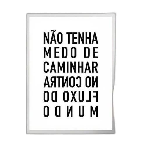 Quadro não tenha medo de caminhar no contra fluxo 45x34cm Moldura: madeira preta Informações do produto tire todas as suas dúvidas no descritivo abaixo: decoração para quarto, sala, cozinha, escritório, área gourmet e muito mais. Chega de paredes vazias. Medidas - cada peça tem 45x34cm a3 . Material do papel - papel fotográfico brilhante de altíssima resolução acabamento - todos os quadros são acompanhados de uma película de acetato para proteção da imagem. - os quadros são embalados de forma segura com plástico bolha com camada dupla de acordo com o tamanho dos quadros. Garantia - garantia de 3 meses. Meu quadro chegou. Como posso fixá-lo Você precisa apenas de um martelo e um prego, pois os quadros já vão acompanhados de penduradores. Esta é a forma mais indicada. Caso prefira, você pode utilizar uma fita dupla face neste caso, sugerimos de alta qualidade para evitar que descole e seu quadro caia . Como posso limpar meu quadro A limpeza é feita como um móvel comum da sua casa. Apenas um pano seco ou espanador são suficientes para tal Ean: 7890178449571