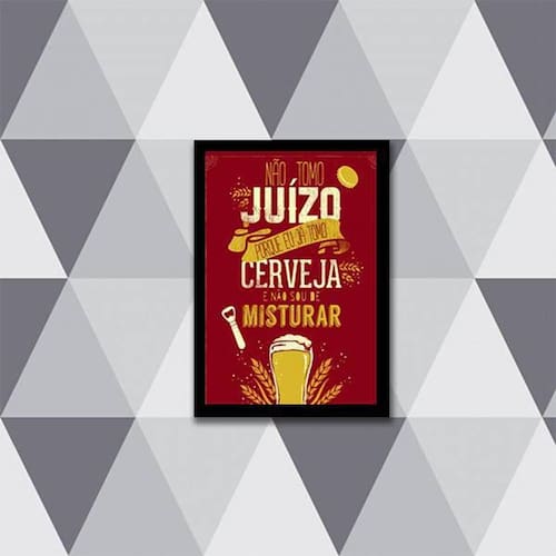 Quadro não tomo juízo, tomo cerveja 24x18cm Moldura: madeira preta Informações do produto tire todas as suas dúvidas no descritivo abaixo: decoração para quarto, sala, cozinha, escritório, área gourmet e muito mais. Chega de paredes vazias medidas - cada peça tem 24x18cm a5 . Material do papel - papel fotográfico brilhante de altíssima resolução acabamento - todos os quadros são acompanhados de uma película de acetato para proteção da imagem. - moldura em madeira maciça na cor branca e pendurador móvel que pode ser retirado facilmente caso deseje fixar com fita dupla face. - os quadros são embalados de forma segura com plástico bolha com camada dupla de acordo com o tamanho dos quadros. - de 3 meses prazo de envio pedimos 24 horas úteis no máximo para enviar seu pedido após o envio, segue os prazos normais dos correios, cerca de 7 exceto para norte e nordeste, que pode ser de até 14 . Em diversas cidades, este prazo normalmente é reduzido, mas depende do prazo dos correios. Meu quadro chegou. Como posso fixá-lo Você precisa apenas de um martelo e um prego, pois os quadros já vão acompanhados de penduradores. Esta é a forma mais indicada. Caso prefira, você pode utilizar uma fita dupla face neste caso, sugerimos de alta qualidade para evitar que descole e seu quadro caia . Como posso limpar meu quadro A limpeza é feita como um móvel comum da sua casa. Apenas um pano seco ou espanador são suficientes para tal Marca: Não Informado Ean: 7892091051961
