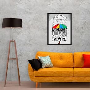 Com o Quadro Decorativo da Quadros On-Line você transforma a decoração do seu ambiente, com beleza e bom gosto. Preencha aquela parede vazia com um quadro de alta qualidade, papel fotográfico brilhante de altíssima resolução e moldura em madeira maciça. Para maior proteção, a peça ainda conta com uma película de acetato. Características: - Papel fotográfico brilhante de altíssima resolução - Película de acetato para proteção da imagem - Moldura em madeira maciça - Pendurador móvel que pode ser retirado facilmente - Pode ser fixado com fita dupla face Especificações técnicas Marca: Quadros On-Line Modelo: Nenhuma Tempestade Dura Para Sempre Material: Papel fotográfico brilhante Acabamento: Película de acetato Moldura: Madeira Cor moldura: Preto Tamanho: 45 x 34 cm - A3 Fixação: Prego ou fita dupla face de alta qualidade Acompanha pendurador: Sim : 3 meses Dica de limpeza A limpeza é feita como um móvel comum da sua casa. Apenas um pano seco ou espanador são suficientes para tal. Marca: Não Informado Ean: 7892090455340