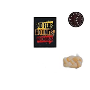 Quadro no fear, no limits, no excuses 24x18cm Moldura: madeira preta Informações do produto tire todas as suas dúvidas no descritivo abaixo: decoração para quarto, sala, cozinha, escritório, área gourmet e muito mais. Chega de paredes vazias medidas - cada peça tem 24x18cm a5 . Material do papel - papel fotográfico brilhante de altíssima resolução acabamento - todos os quadros são acompanhados de uma película de acetato para proteção da imagem. - moldura em madeira maciça na cor branca e pendurador móvel que pode ser retirado facilmente caso deseje fixar com fita dupla face. - os quadros são embalados de forma segura com plástico bolha com camada dupla de acordo com o tamanho dos quadros. Garantia - garantia de 3 meses prazo de envio pedimos 24 horas úteis no máximo para enviar seu pedido após o envio, segue os prazos normais dos correios, cerca de 7 dias úteis exceto para norte e nordeste, que pode ser de até 14 dias úteis. Em diversas cidades, este prazo normalmente é reduzido, mas depende do prazo dos correios. Meu quadro chegou. Como posso fixá-lo Você precisa apenas de um martelo e um prego, pois os quadros já vão acompanhados de penduradores. Esta é a forma mais indicada. Caso prefira, você pode utilizar uma fita dupla face neste caso, sugerimos de alta qualidade para evitar que descole e seu quadro caia . Como posso limpar meu quadro A limpeza é feita como um móvel comum da sua casa. Apenas um pano seco ou espanador são suficientes para tal